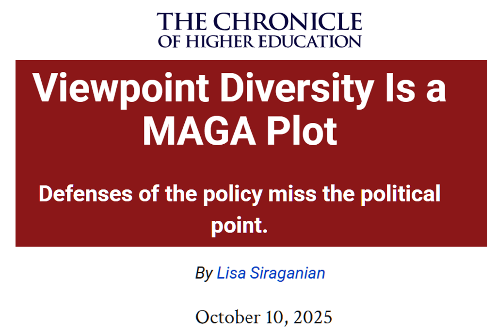 “When advocates call for viewpoint diversity, they do so in “bad faith,” as their real aim is to increase the number of conservatives in higher ed.”