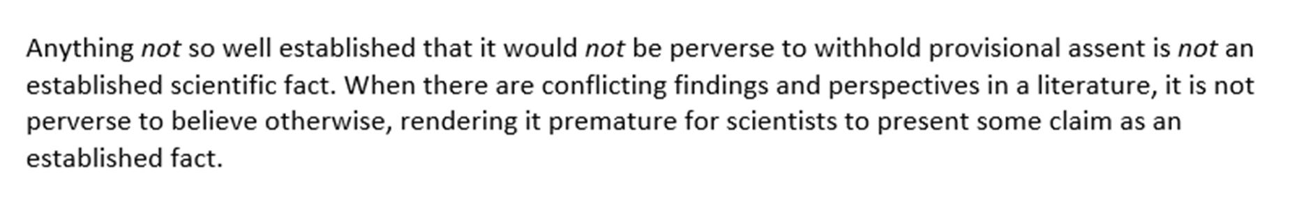 Science is settled when there is such a mountain of evidence supporting some claim that it would be perverse to disbelieve it. One of us (Jussim) has not too long ago added this corollary to Gould’s definition of scientific fact: